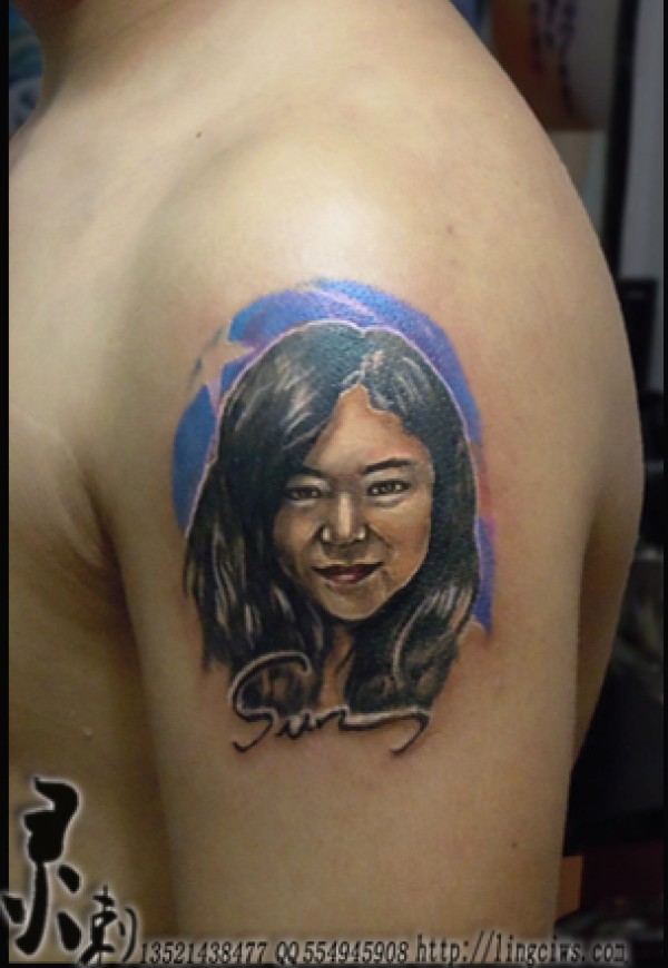 女性肩部肖像刺青_肖像纹身图案大全_纹身图吧