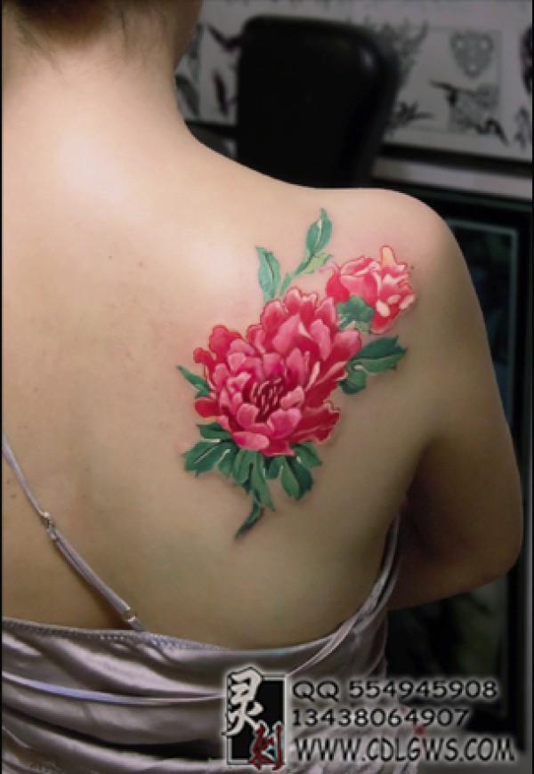 后肩唯美花藤英文图案图片_植物纹身图案大全_纹身图吧