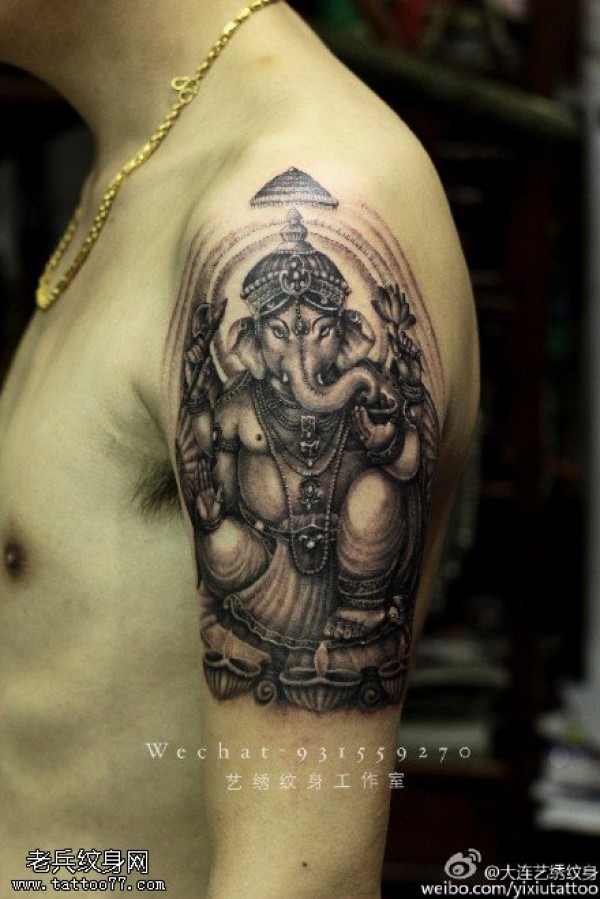 手臂黑灰象神_一组12张手臂上的黑灰象神纹身图案作品欣赏