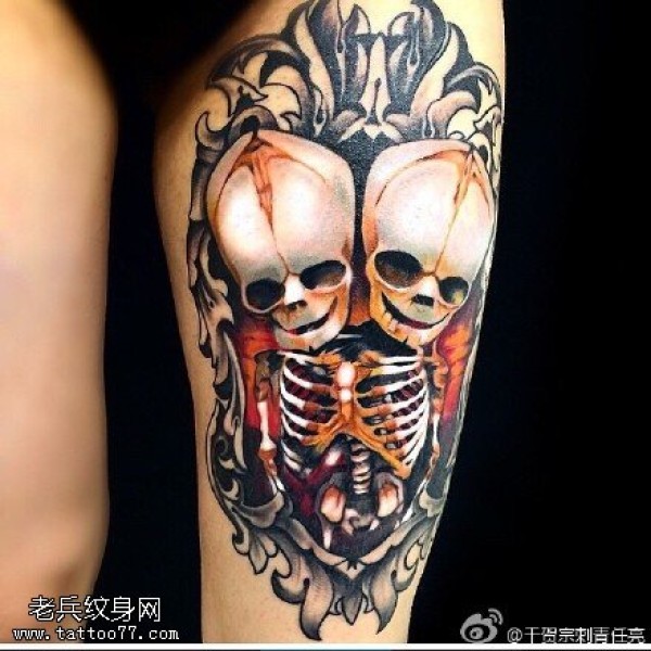 惊悚的死神双头骷髅纹身图案