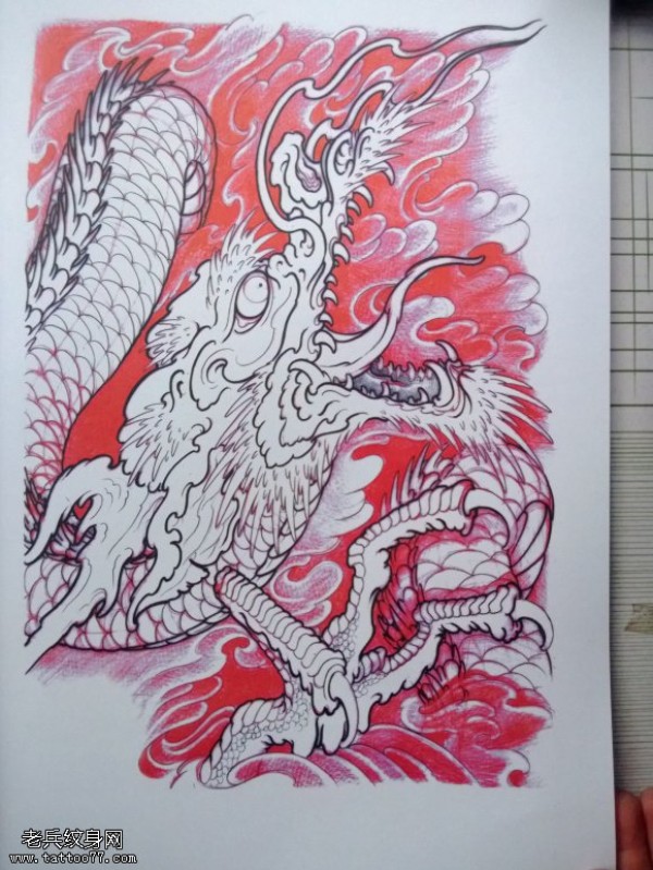 龙纹身手稿_一组老传统黑灰龙手稿纹身图案