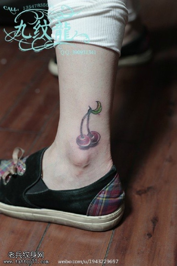 清新小桃花脚踝纹身_脚部纹身图案大全_纹身图吧