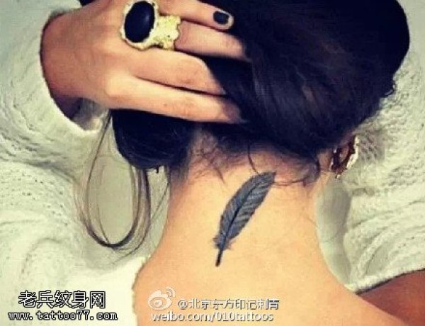 后颈部纹身小图--9张女生脖子后颈处的简约纹身图案
