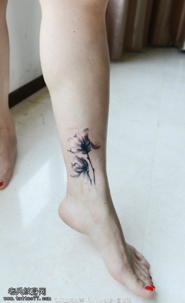 分享一款脚踝莲花纹身图案_脚部纹身图案大全_纹身图吧