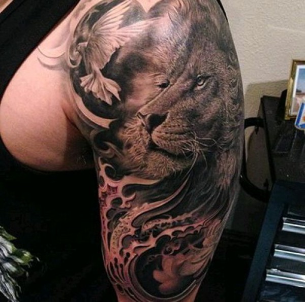 霸气狮子头手臂纹身