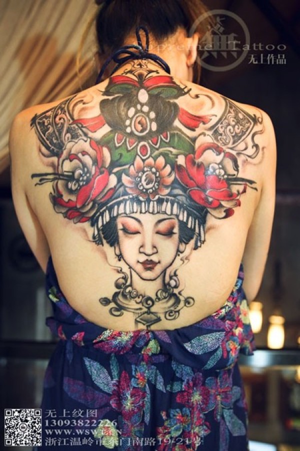 云南印象满背肖像纹身