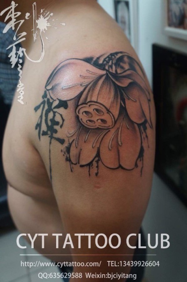 女生肩花纹身_15张女性双肩对称的肩花纹身图案作品图片