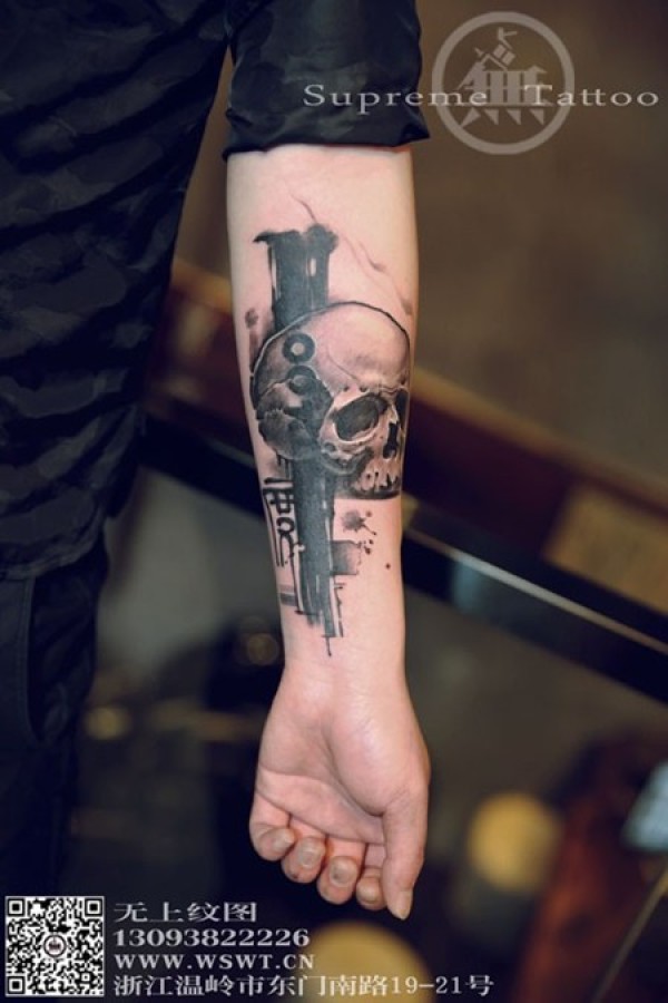 个性手臂悲伤的骷髅纹身图案图案图片_骷髅纹身图案大全_纹身图吧