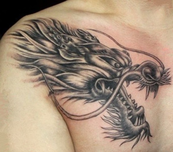龙纹身手稿_一组老传统黑灰龙手稿纹身图案