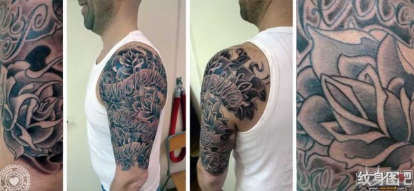 女生肩花纹身_15张女性双肩对称的肩花纹身图案作品图片