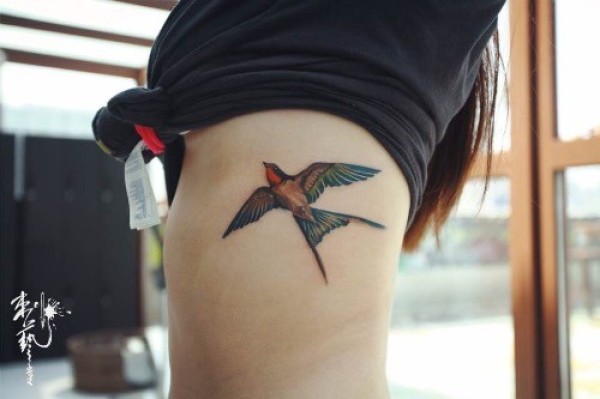 分享一款腰部时尚性感的蝶恋花纹身图案_腰部纹身图案大全_纹身图吧