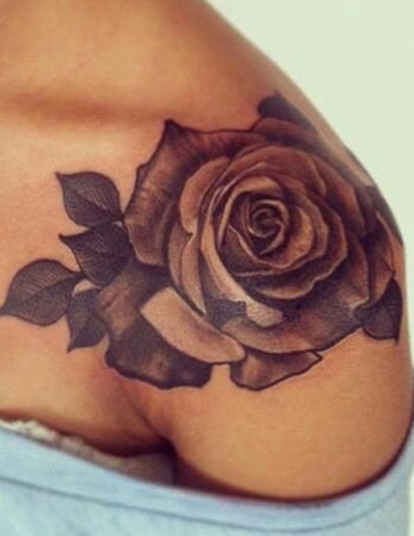 女性肩膀上多款漂亮的花朵纹身图案