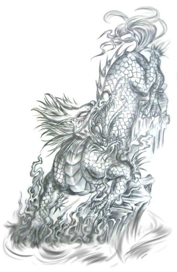 龙纹身手稿_一组老传统黑灰龙手稿纹身图案
