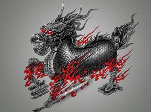 龙纹身手稿_一组老传统黑灰龙手稿纹身图案