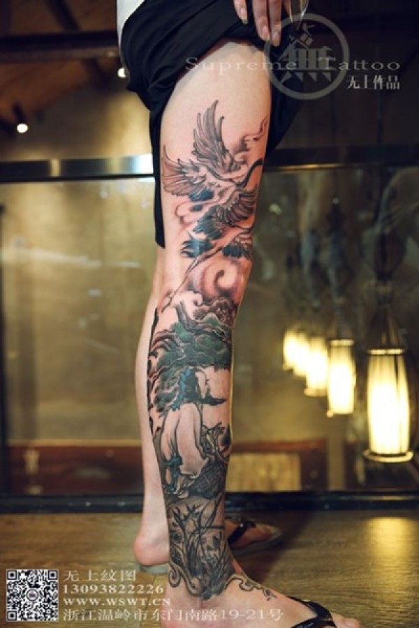 传统花腿纹身--18张传统风格的大花腿纹身图案作品