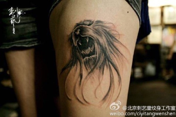 传统花腿纹身--18张传统风格的大花腿纹身图案作品
