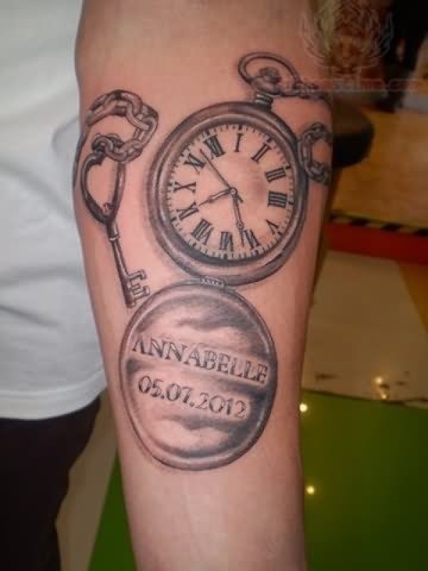 手臂上具有历史感的怀表纹身