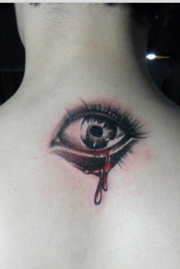 男生后脖眼睛纹身