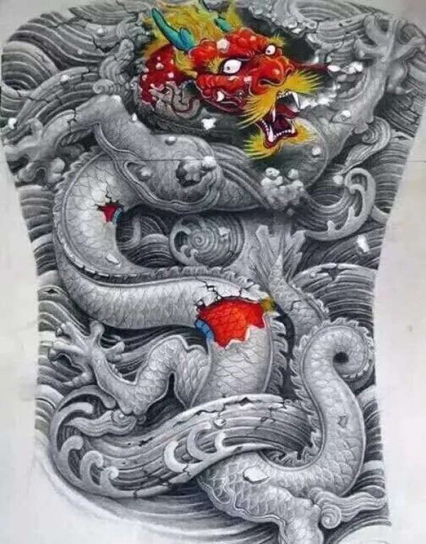 忠义堂刺客龙纹身手稿