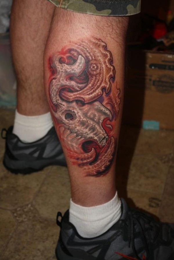 花腿纹身--一组大黑腿纹身图案作品欣赏