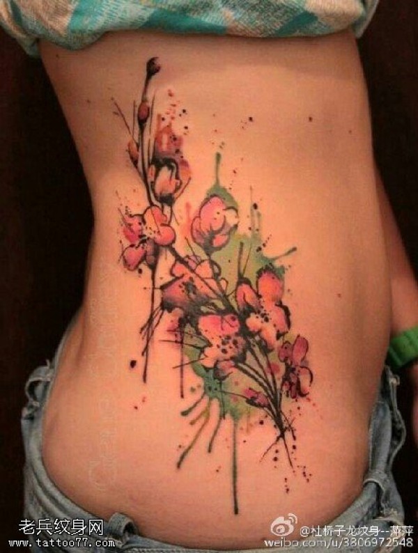女生玲珑腰部的依兰花图案纹身女生腰部嫣红底_腰部纹身图案大全_纹身图吧