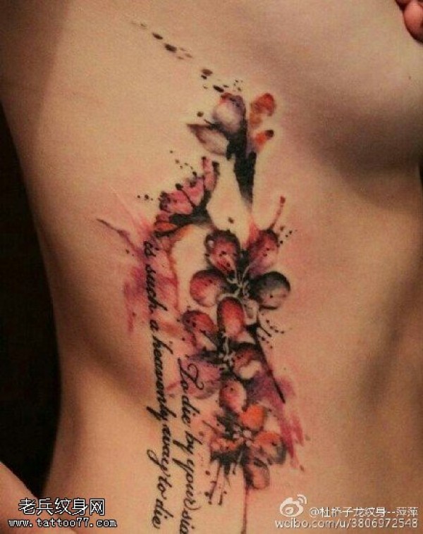分享一款腰部时尚性感的蝶恋花纹身图案_腰部纹身图案大全_纹身图吧