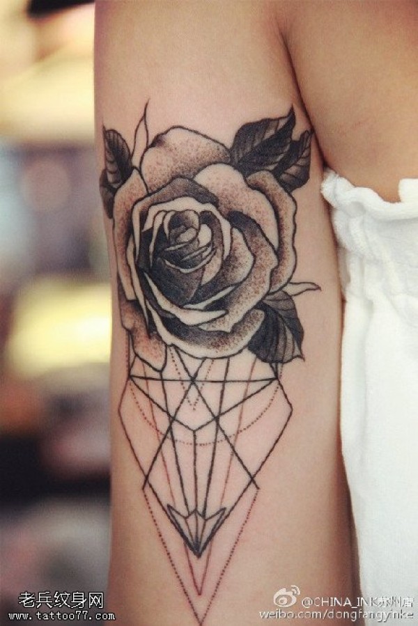 经典玫瑰几何线条纹身图案