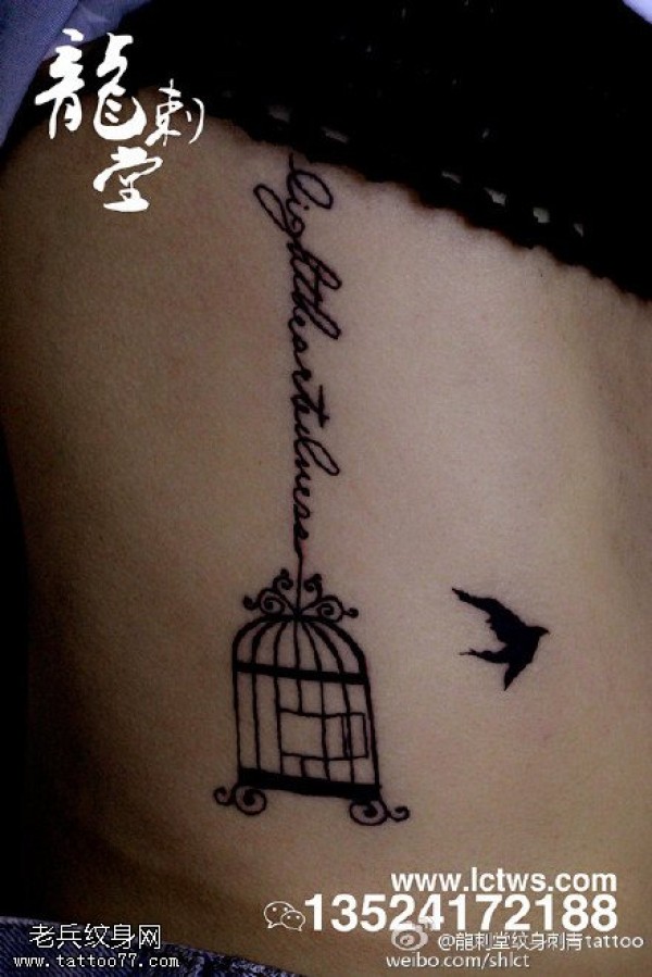 女生后腰纹身黑白灰风格抽象线条纹身图案