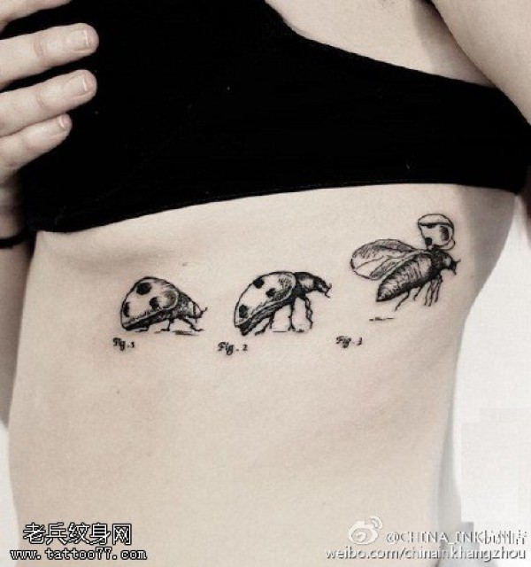 分享一款腰部时尚性感的蝶恋花纹身图案_腰部纹身图案大全_纹身图吧