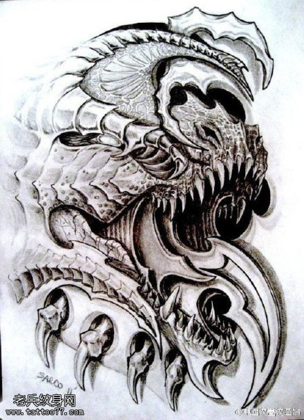 龙纹身手稿_一组老传统黑灰龙手稿纹身图案