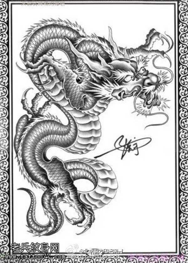 龙纹身手稿_一组老传统黑灰龙手稿纹身图案