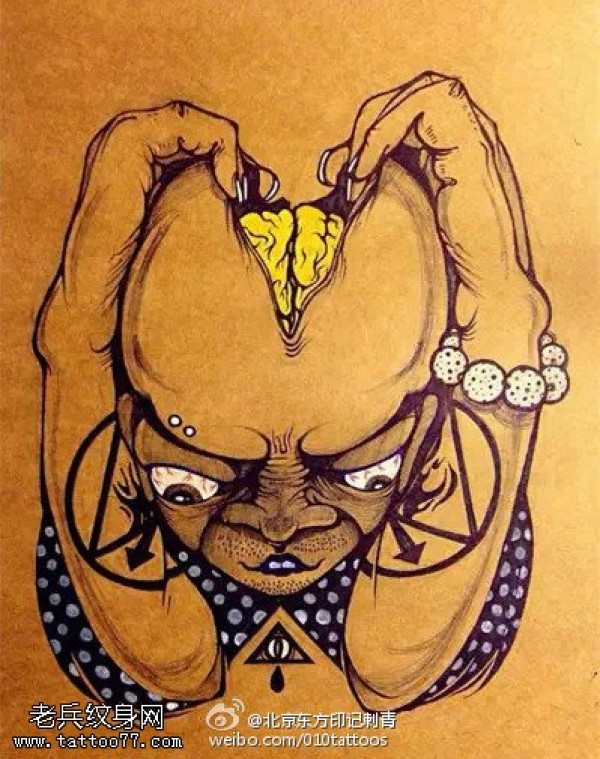 能面万媚纹身手稿_52张日式能剧面具纹身手稿图案素材欣赏