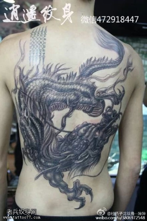 龙纹身手稿_一组老传统黑灰龙手稿纹身图案
