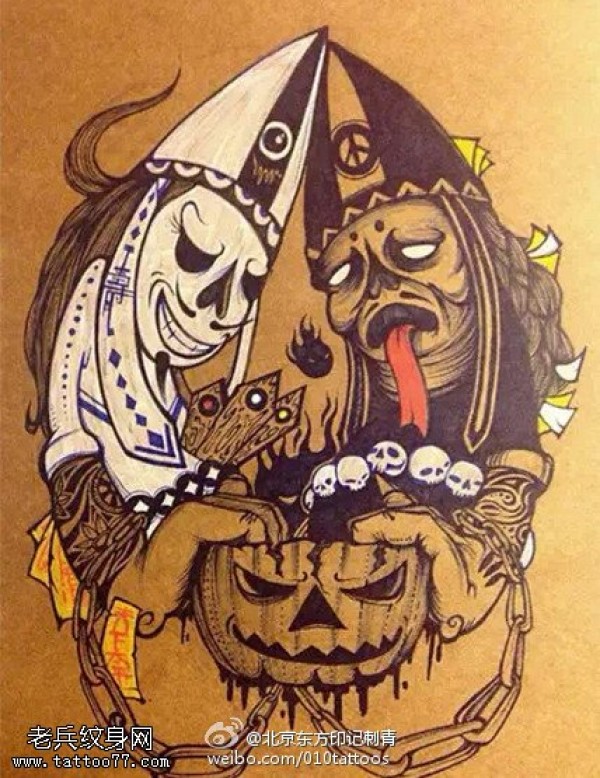 能面万媚纹身手稿_52张日式能剧面具纹身手稿图案素材欣赏