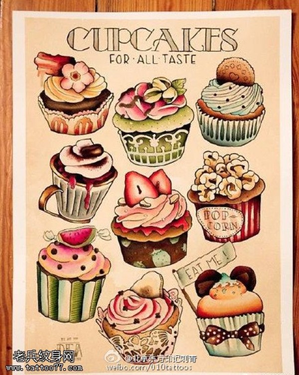 各种好吃的甜点纹身图案