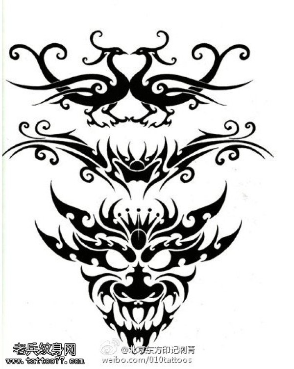 能面万媚纹身手稿_52张日式能剧面具纹身手稿图案素材欣赏