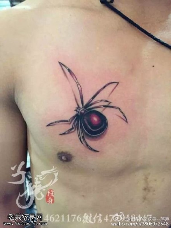 胸前3D蜘蛛纹身图案