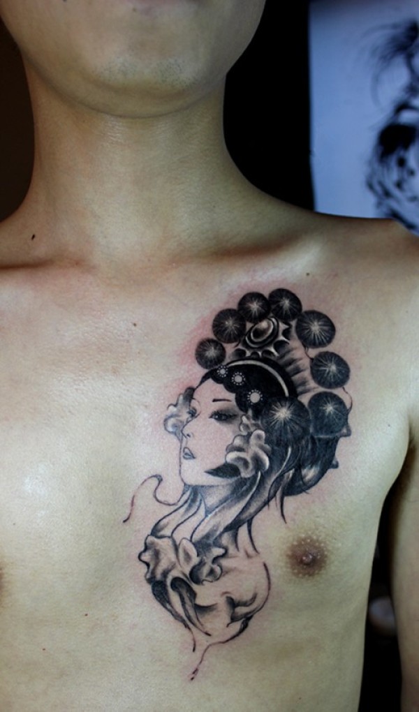 男生胸前经典的女性生殖器官纹身图案_胸部纹身图案大全_纹身图吧