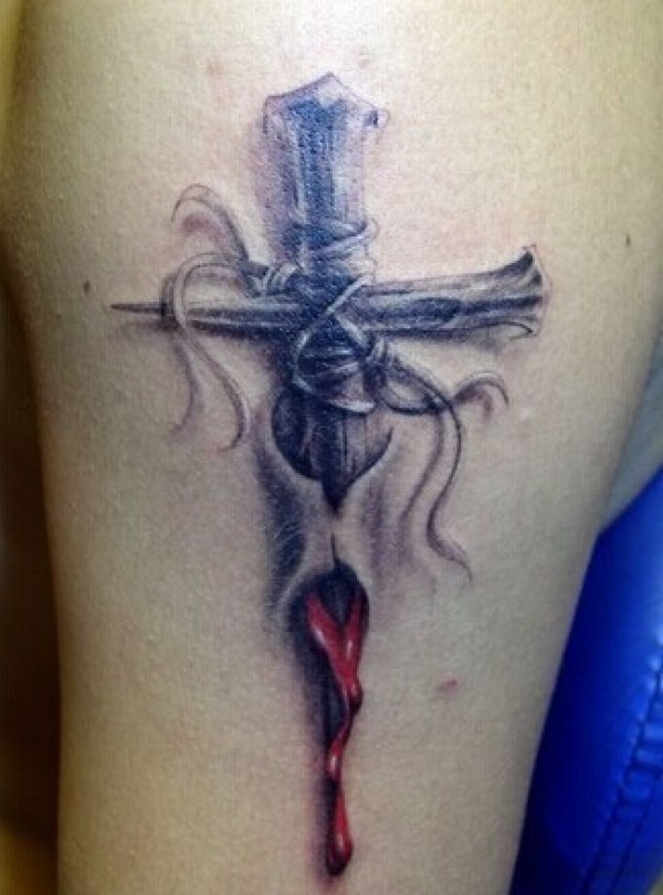 胳膊上帅气的3d十字架纹身