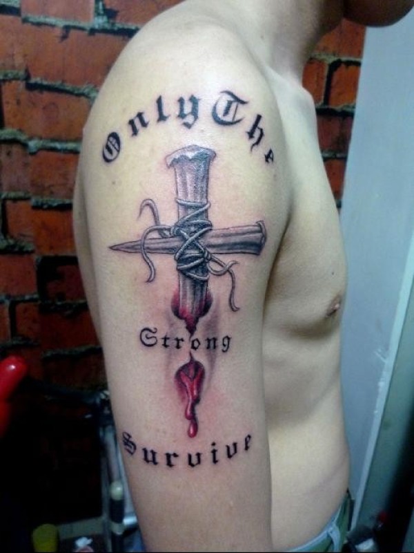 胳膊上帅气的3d十字架纹身