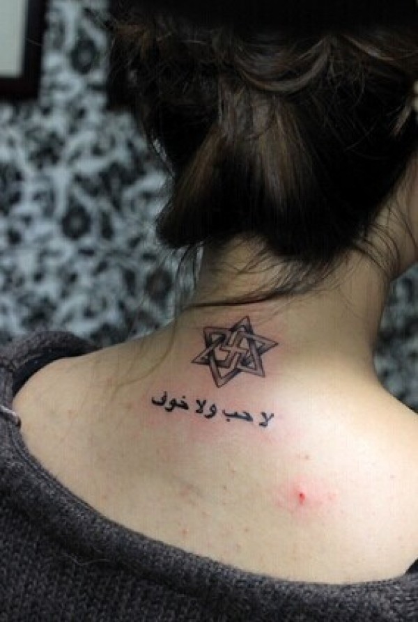 后颈部纹身小图--9张女生脖子后颈处的简约纹身图案