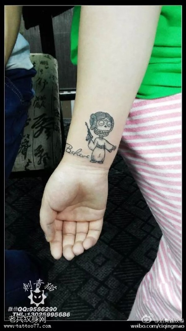 手臂上可爱的小人纹身图案