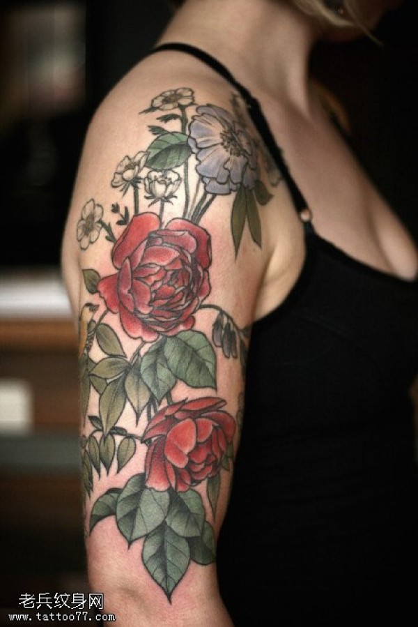 女生肩花纹身_15张女性双肩对称的肩花纹身图案作品图片