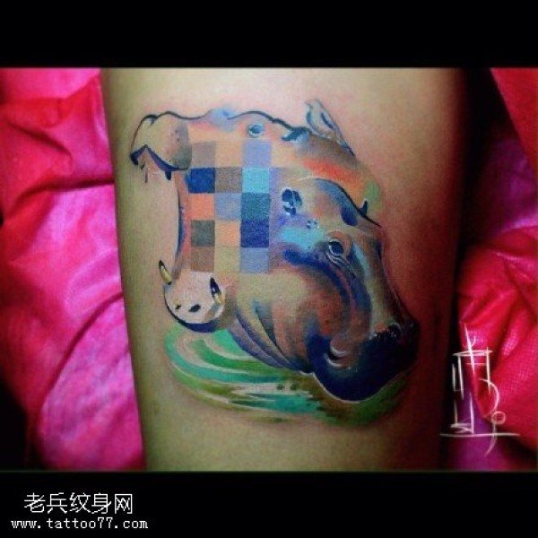 小腿上一款大象纹身图案_腿部纹身图案大全_纹身图吧
