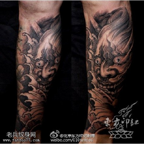 花腿纹身--一组大黑腿纹身图案作品欣赏