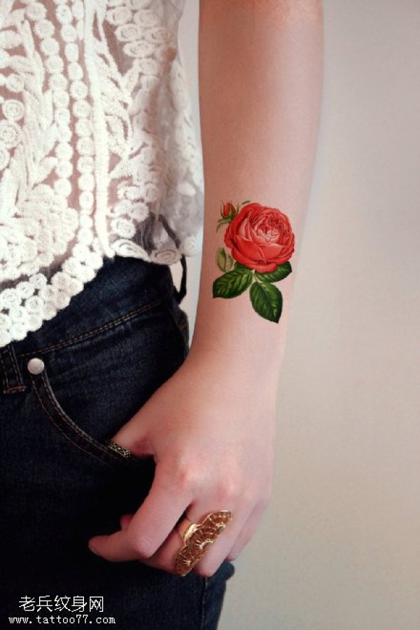 欧美玫瑰纹身 男生手臂上花朵纹身图片