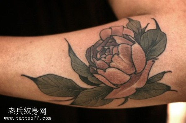 欧美玫瑰纹身 男生手臂上花朵纹身图片