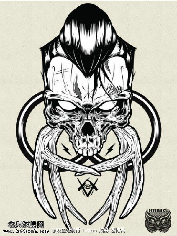 经典骷髅头手稿纹身图案