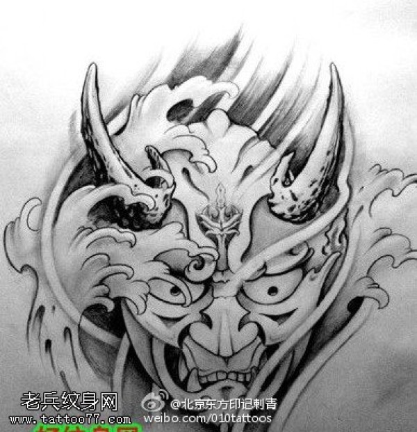 能面万媚纹身手稿_52张日式能剧面具纹身手稿图案素材欣赏
