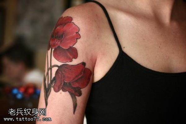 女生肩花纹身_15张女性双肩对称的肩花纹身图案作品图片